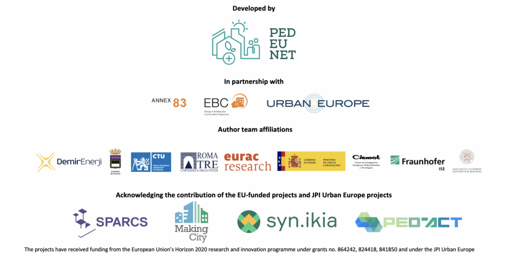 Laura Aelenei (Laboratório Nacional de Energia e Geologia / LNEG), Nienke Maas (Netherlands Organisation for applied scientific research / TNO), Savis Gohari (Oslo Metropolitan University / OsloMet), Andras Reith (Advanced Building and Urban Design / ABUD), Ghazal Etminan (Austrian Institute of Technology / AIT), Maria-Beatrice Andreucci (Universita Sapienza), Francesco Reda (VTT Technical Research Centre of Finland Ltd / VTT), Mari Hukkalainen (VTT Technical Research Centre of Finland Ltd / VTT), Judith-Borsboom (Locality), Gilda Massa (National Agency for New Technologies, Energy and Sustainable Economic Development / ENEA), Jelena Ziemele (University of Latvia), Nikola Pokorny (Czech Technical University in Prague / CTU), Sergio Diaz de Garayo Balsategui (Centro Nacional de Energías Renovables / CENER, IEA Annex 83), Christoph Gollner (Austrian Research Promotion Agency / FFG, JPI UE), Silvia Bossi (National Agency for New Technologies, Energy and Sustainable Economic Development / ENEA, JPI UE), Christian Winzer (Zurich University of Applied Science / ZHAW), George Martinopoulos (Centre for Research and Technology Hellas / CERTH), Maria Nuria Sánchez (Centro de Investigaciones Energéticas, Medioambientales y Tecnológicas / CIEMAT), Angelina Tomova (Energy Agency of Plovdiv), Xingxing Zhang (Dalarna University), Juveria Shah (Dalarna University), Mengjie Han (Dalarna University), Oya Tabanoğlu (Demir Enerji)